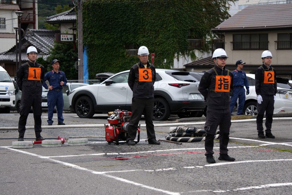 当社からは、動力ポンプによる消火活動の種目に、自衛消防隊の精鋭5名がエントリーしました。