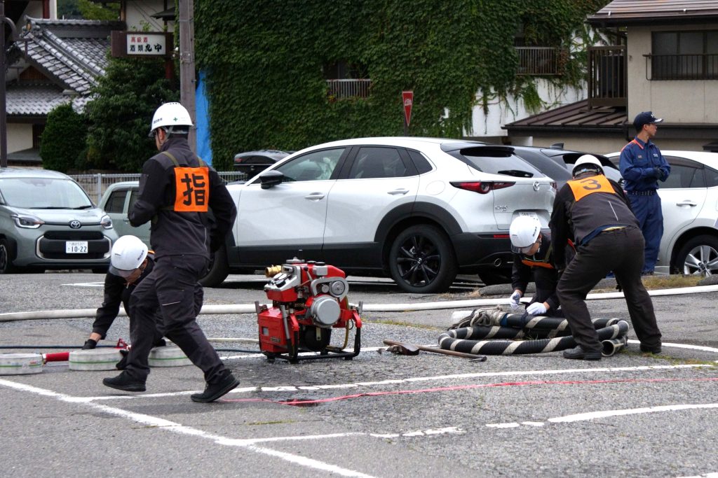 動力ポンプを使用した消火活動では、ホースの連結、貯水槽からの給水、動力ポンプの始動、火点への放水といった一連の動作を迅速に行うことが求められます。また、チーム全員の息の合った連携も重要なポイントとなります。