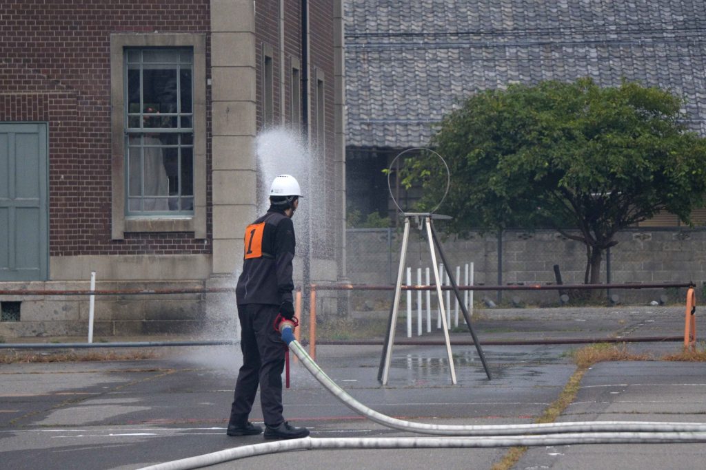 日頃の訓練の成果を存分に発揮し、放水による模擬消火を迅速かつ的確に遂行することができました。