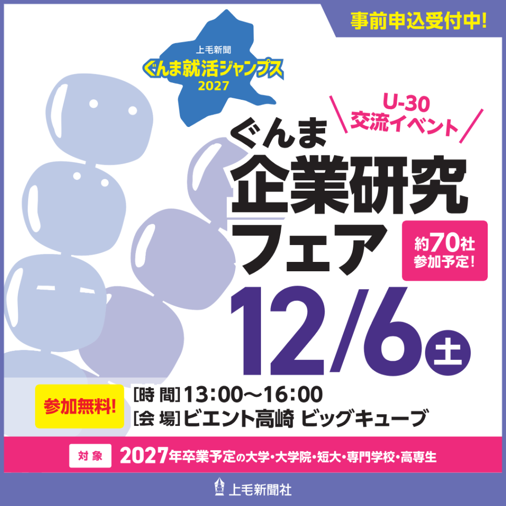 U-30交流イベント ぐんま企業研究フェア | 上毛新聞ぐんま就活ジャンプス2027
